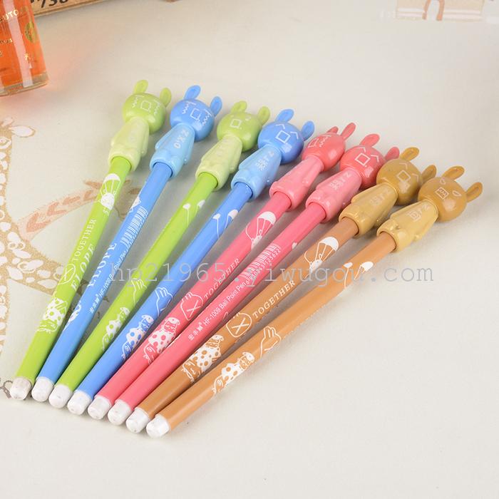淘宝热卖韩国文具 卡通油性动物插套圆珠笔 学生学习文具笔批发