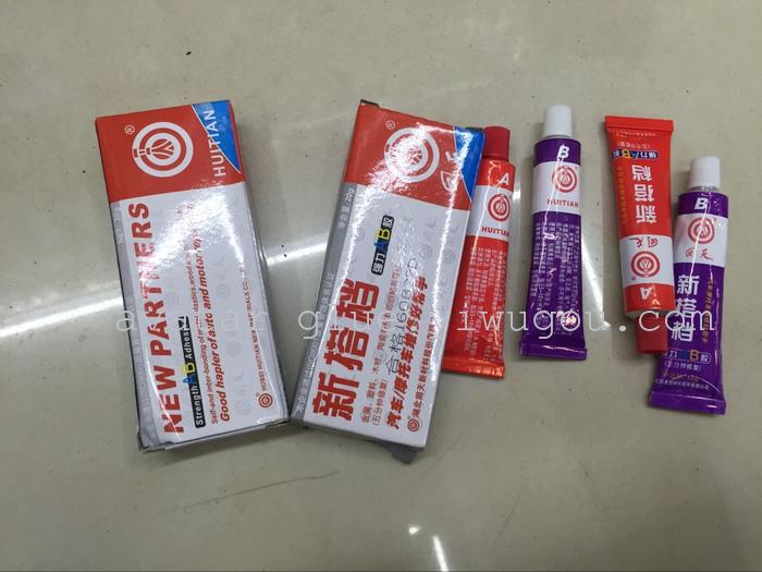 补粘接表面不必严格处理,只需砂纸打磨而无需脱脂,按目测A:B=1:1比例混合后粘接可二面分别涂布或单面重叠涂布后粘接,常温指压下3-8分钟固化定位,30-60分钟达到70%的最终强度,24小时后达到最高强度,剪切强度>20MPa(200Kg/cm2).可以在-60~120度环境下使用。