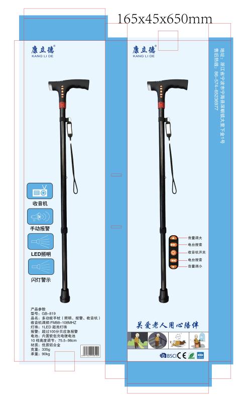 0只,智能拐杖 家用多功能老年人伸缩拐杖 带LED灯收音机报警
