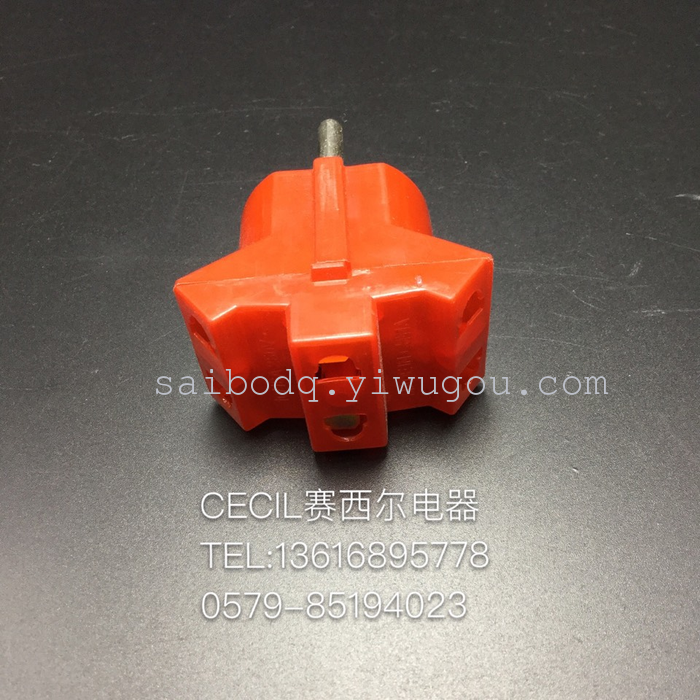 【产品名称】:赛西尔电器 插头 【产品型号】:红色转换插 【产品材质】:塑料 【产品颜色】:红色 量大可以根据客人的要求来定做 |