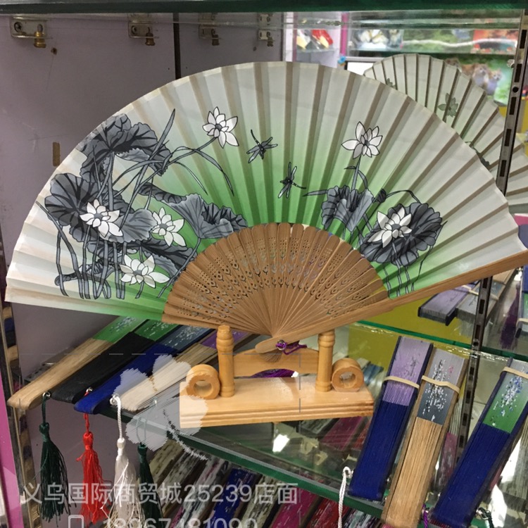 【高档中国风扇子女式折扇系列】扇长:21cm 展开直径:36cm 扇骨材质:头青竹子 扇面材质:绫娟 装箱数:1000