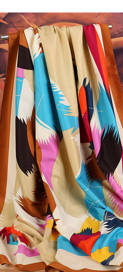 秋季新款欧美风涂鸦印花仿真丝 丝巾 女方巾