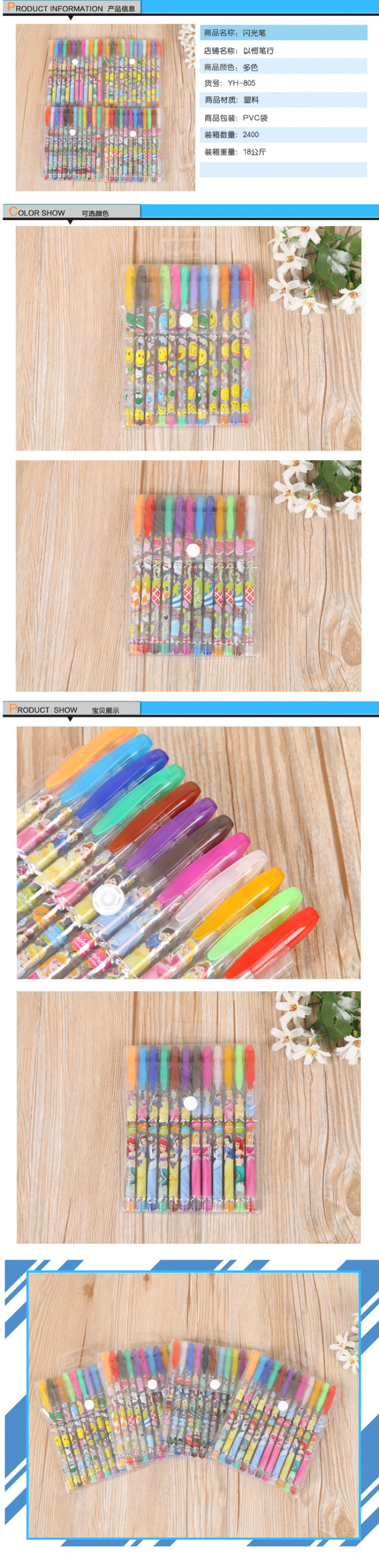 • 主营圆珠笔,闪光笔,荧光笔,水粉笔,中性笔,中性笔芯,圆珠笔芯,支持小额批发,混装。欢迎新老客户前来采购,联系电话0579-85161928