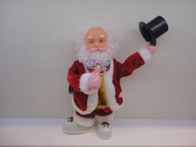 9123 正巧圣诞 12寸电动圣诞老人 手里拿着话筒唱杰克逊音乐 非常炫酷 圣诞老人会根据音乐扭动身子和手上的礼帽 造型独特 做工精致 质量好 单个彩盒包装