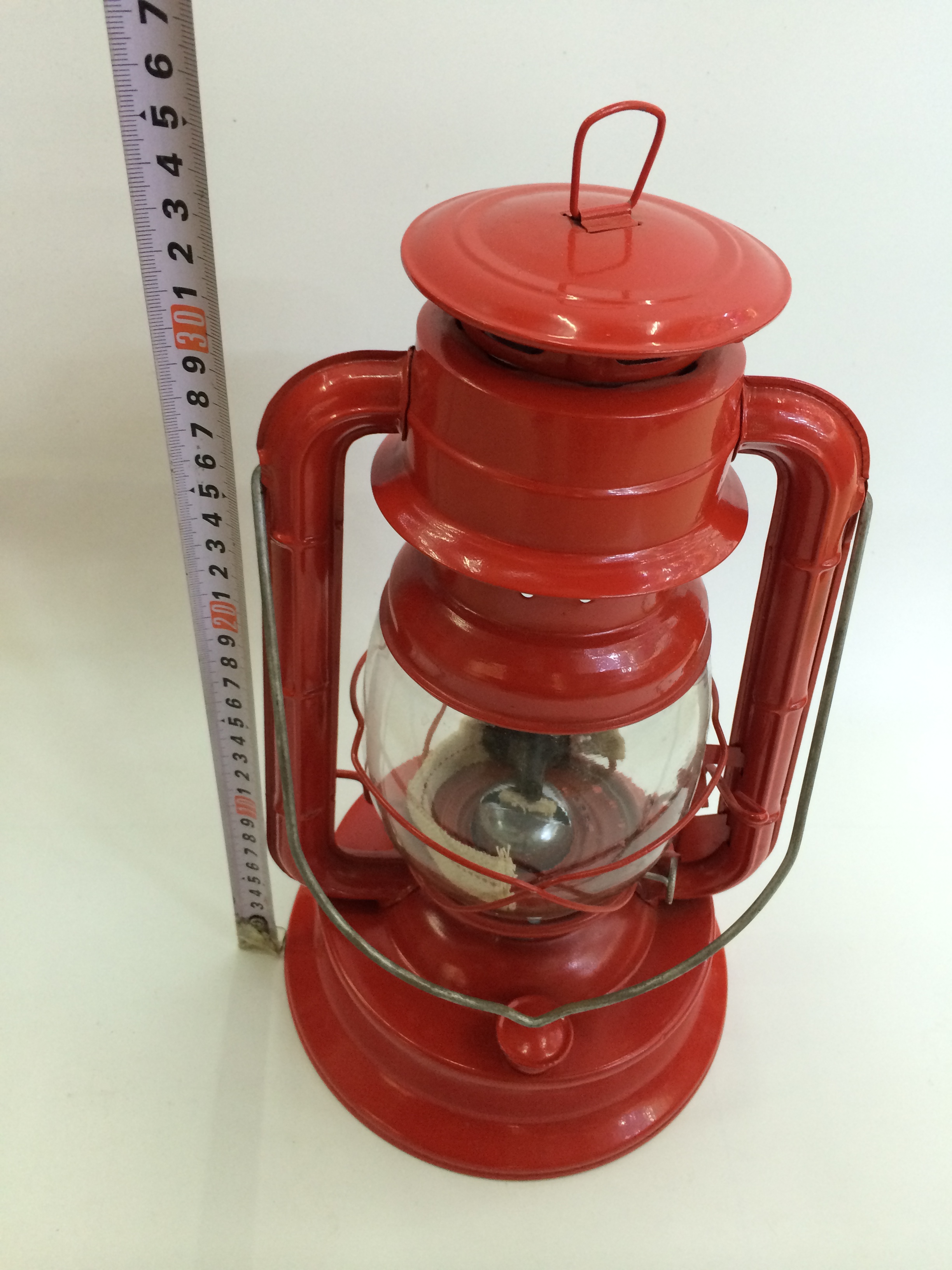 90油灯34公分高,底部直径19.5公分。是大号油灯。颜色有红,绿,深蓝,浅蓝,黑色等。铁和玻璃组成,玻璃灯罩和全棉灯芯,外边都是铁质的。油装满可以用7天左右也可以户外照明环保节能。