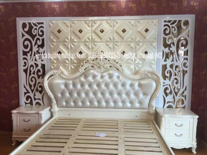 精品皮雕软包,广泛应用于建筑领域,电视背景墙、沙发背景墙、床头背景墙,卧室,沙发背以及KTV装潢等,具有装饰性强,吸声降噪,防潮防霉等特性。软包背景墙使用材料质地柔软,色彩柔和能够软化整体空间氛围。