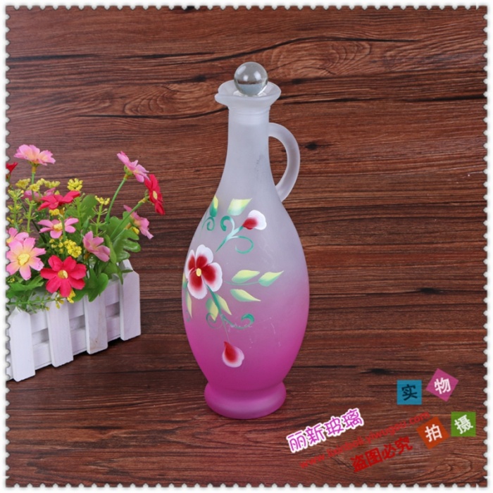 厂家直销玻璃彩色酒瓶 异型酒瓶带把玻璃制品 投诉