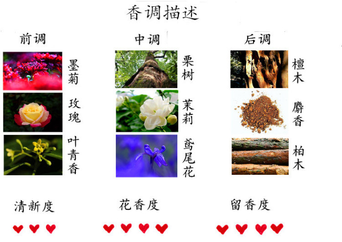 清淡的花香调给人以淡雅的感觉,如夏天的一缕清风,带给人甜美的气息。如同阳光下的花丛,半月门一抹斜阳下的兰花,安静优雅。