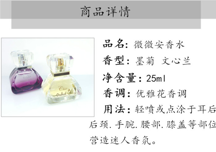薇薇安香泽秀墨菊文心兰花香水清淡香持久女士专供出口 投诉