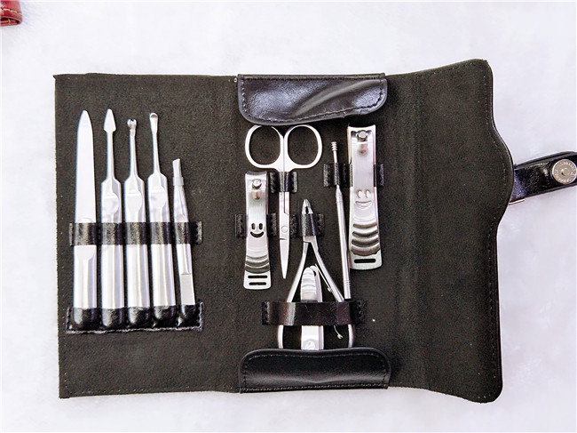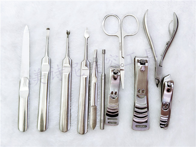 【包含物品】大号笑脸指甲刀、中号指甲刀、斜口笑脸指甲刀、弯头多用剪、指甲锉、眉夹、耳勺、死皮推。