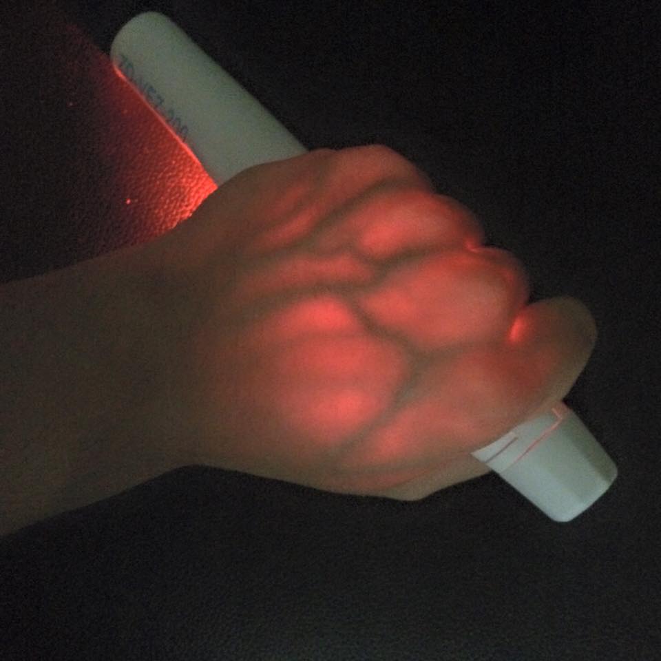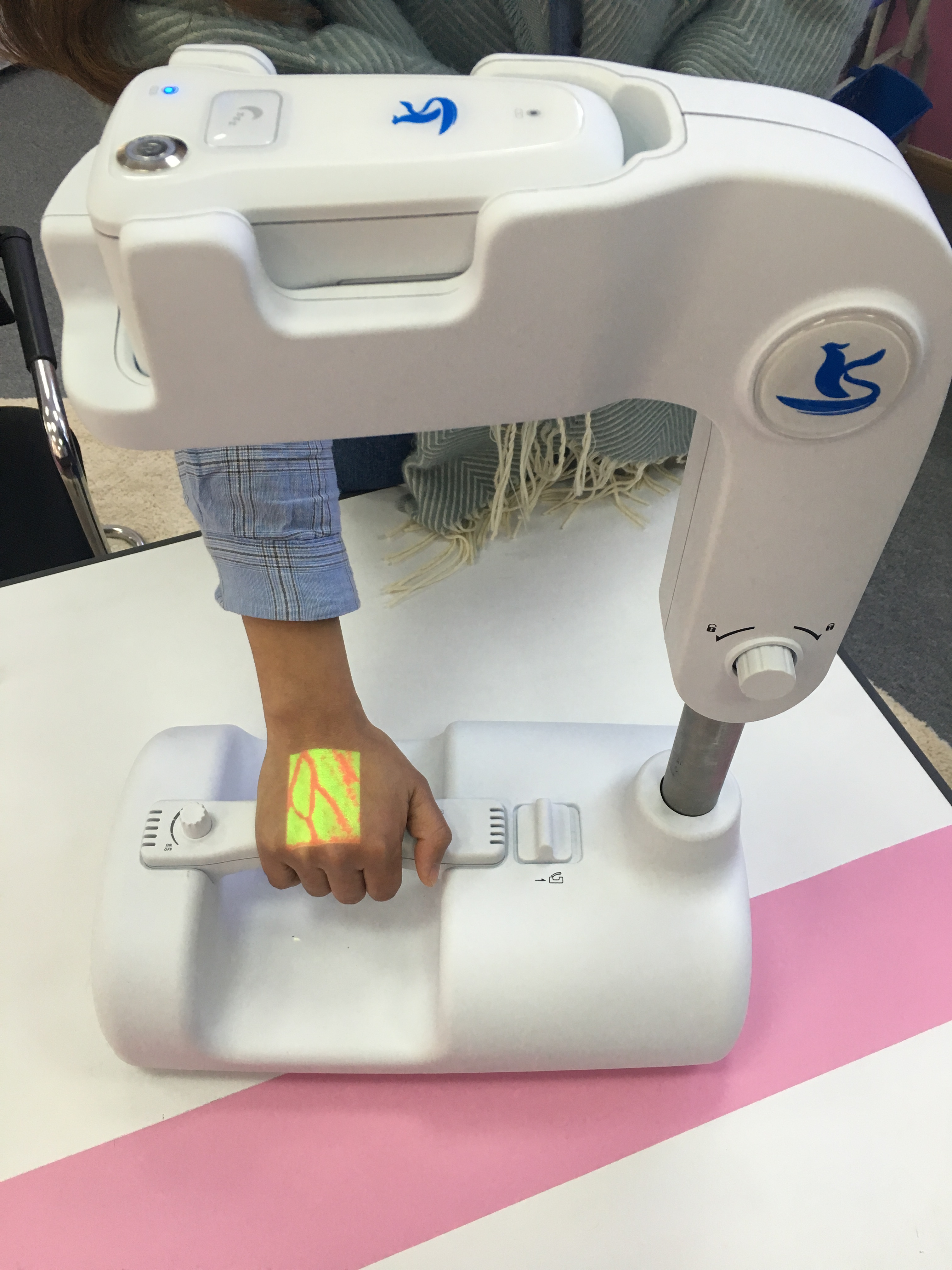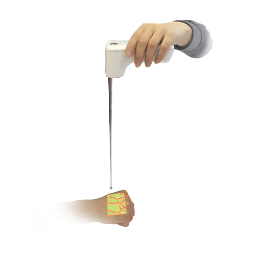 通用型打针宝通过较强的红光透射,可以将手背处的血管清晰的显现出来,从而协助医护人员查看皮下适合穿刺的静脉血管,显著提高静脉穿刺的一次成功率。