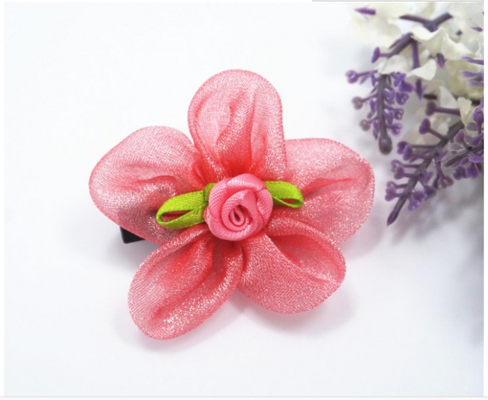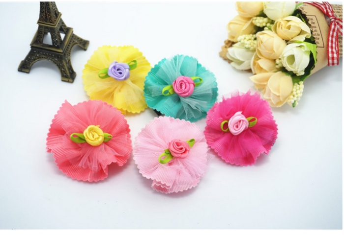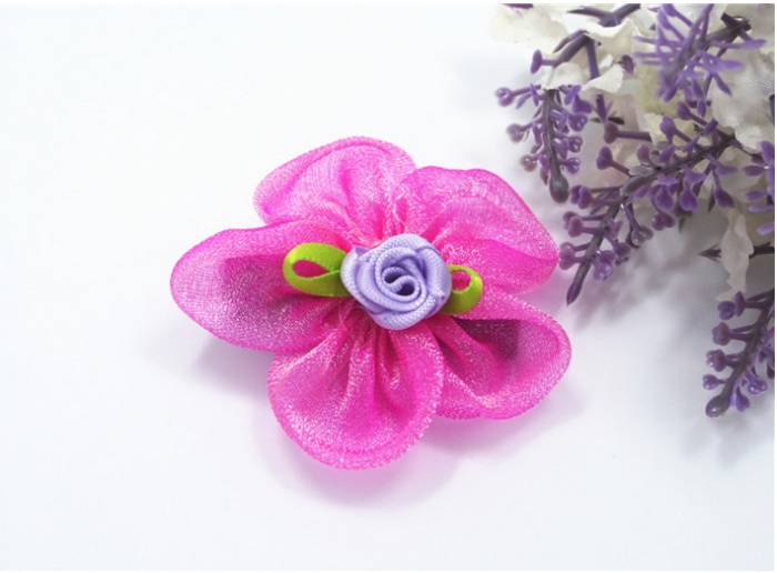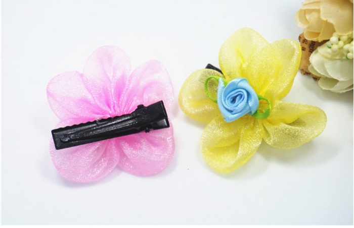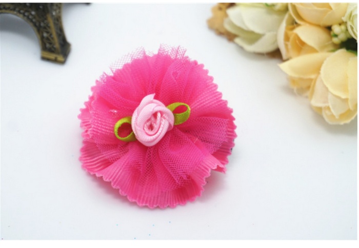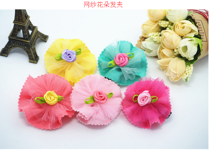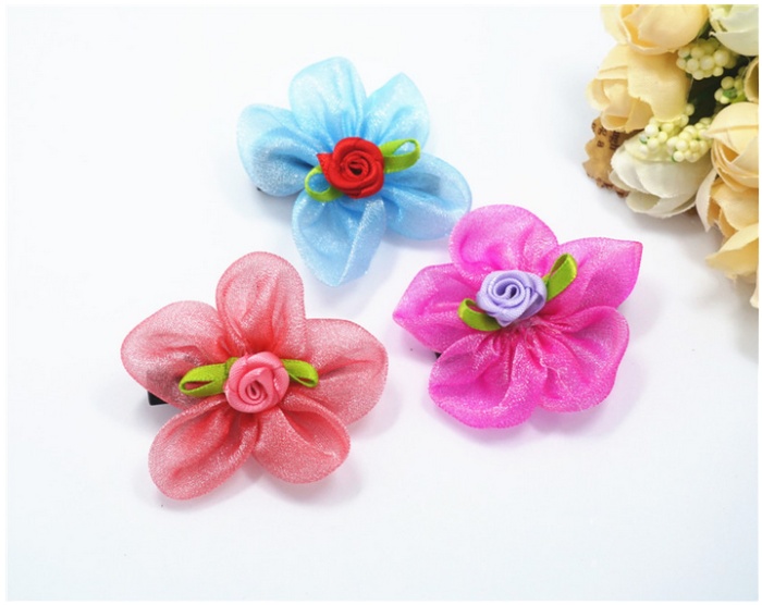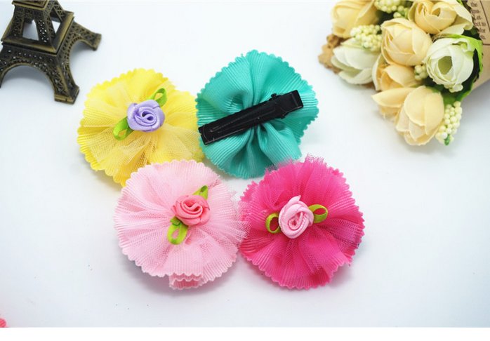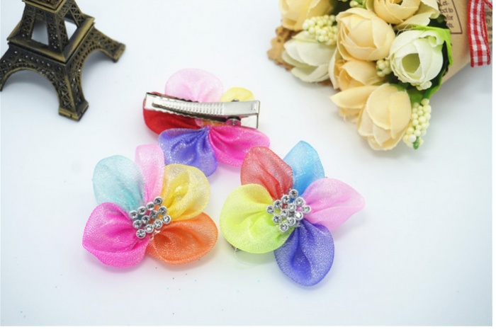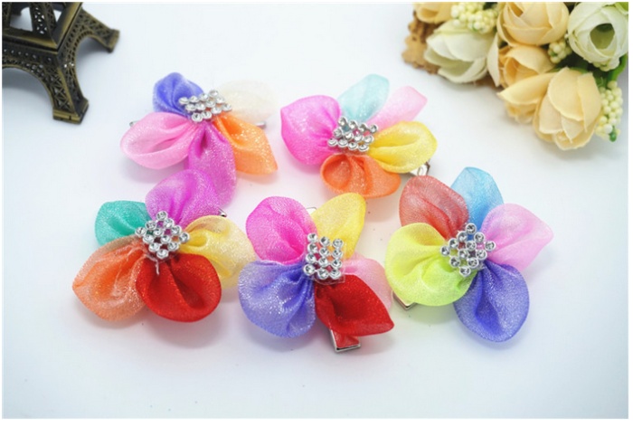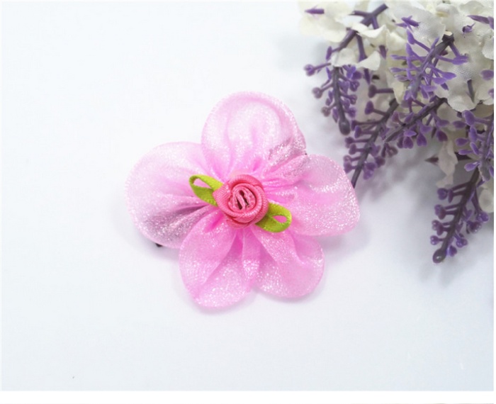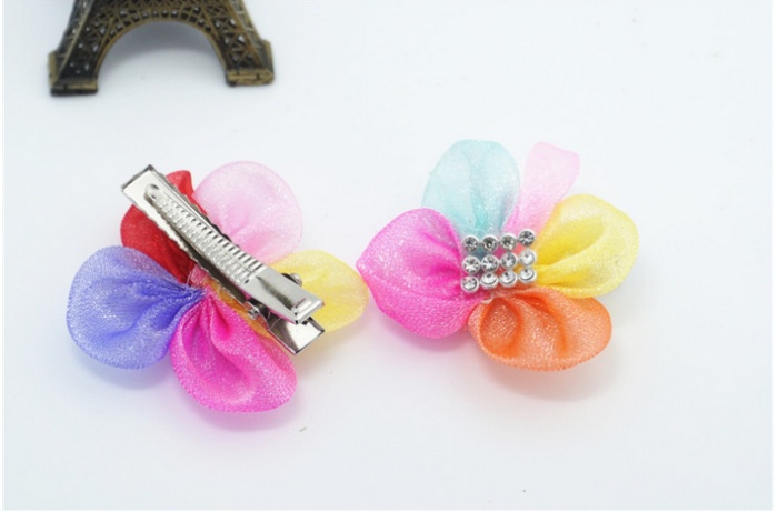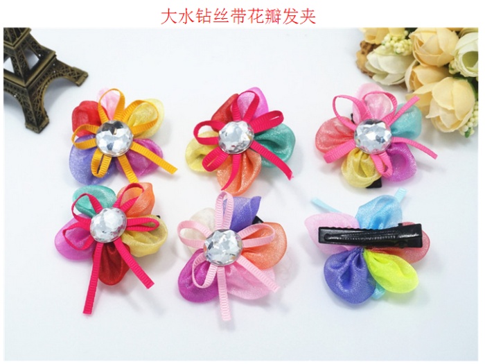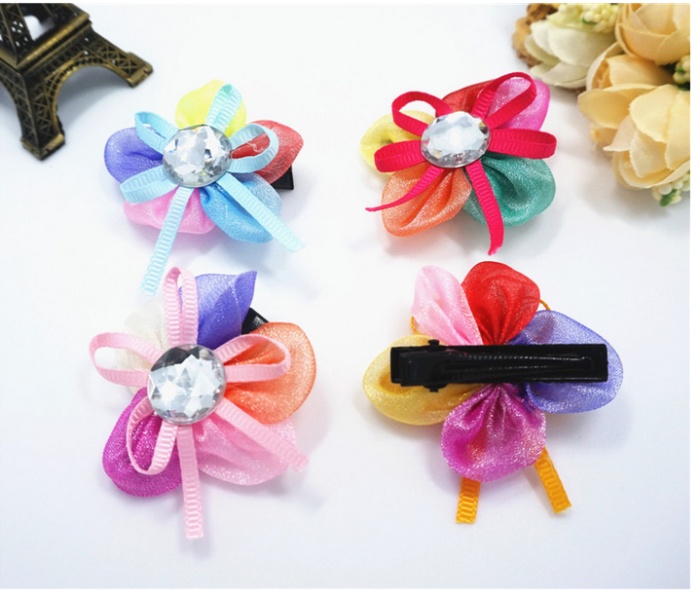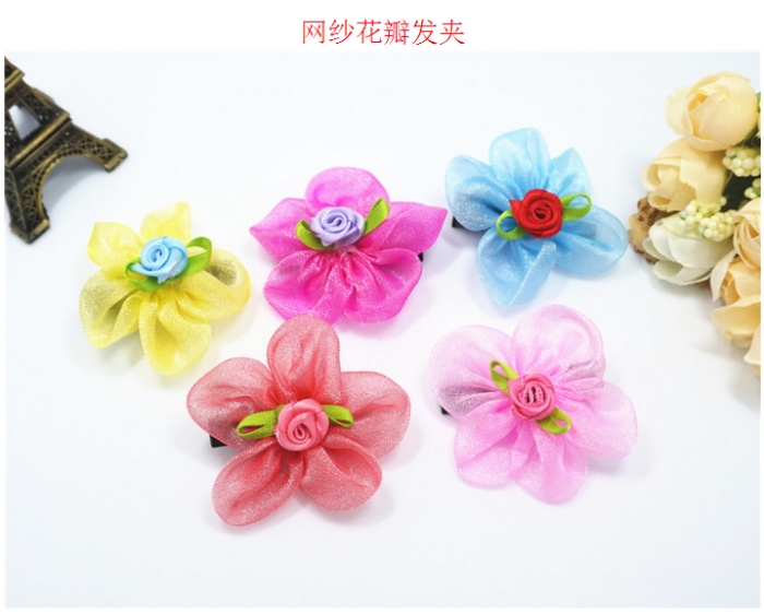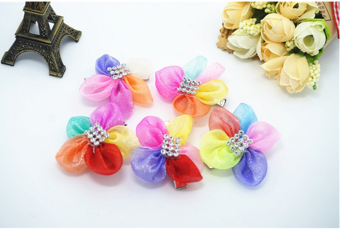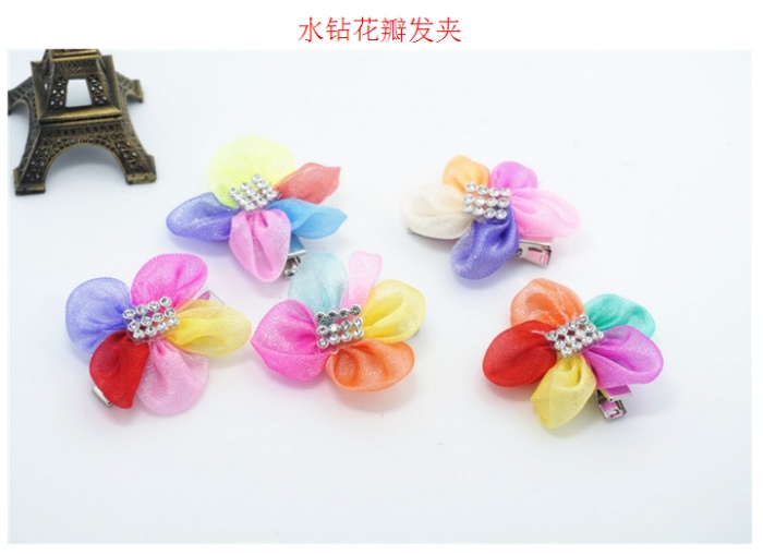 新款花朵花瓣宠物发夹 网纱水钻狗狗头饰 猫狗长毛犬卡子饰品