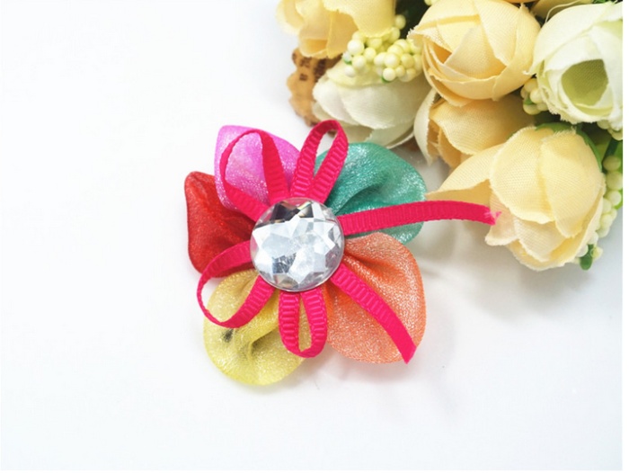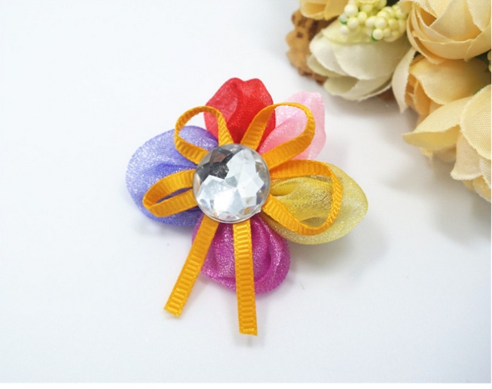 新款花朵花瓣宠物发夹 网纱水钻狗狗头饰 猫狗长毛犬卡子饰品 投诉
