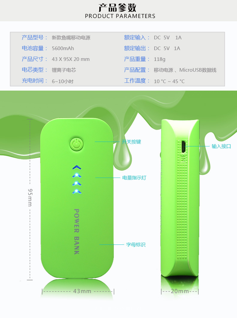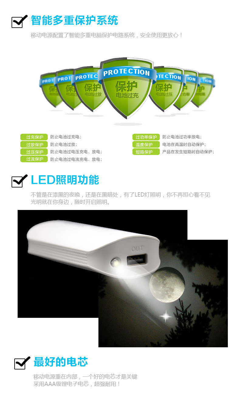 【产品配件】:电源主机+安卓USB充电线 +精美包装