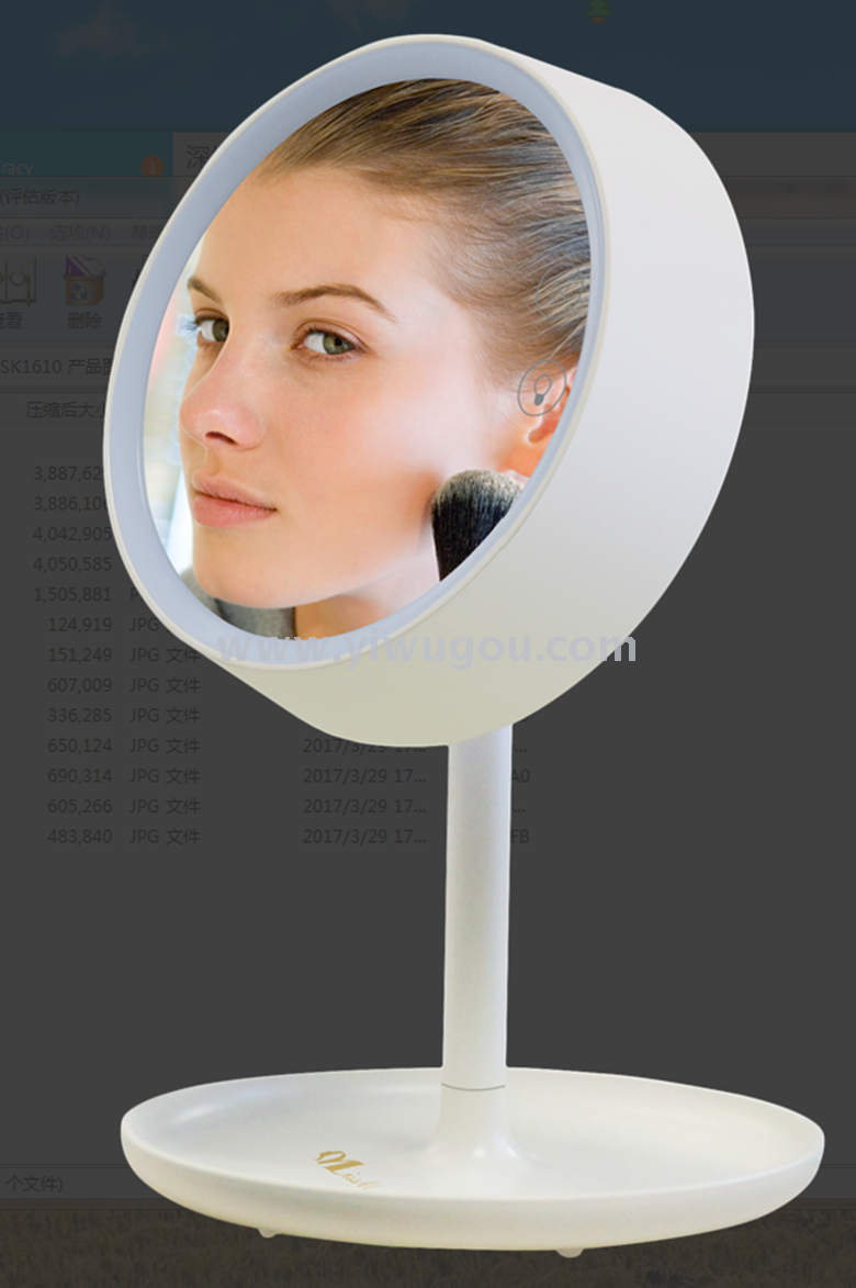 【产品名称】: LED化妆镜 【产品型号】: SK1610 【产品尺寸】: 27.5X19cm. 【产品材质】: ABS 【产品工艺】: 实色 【产品包装】: 单个盒子 【外箱尺寸】: 44*41*47cm 【毛重净重】: N.W/G.W:11.8kgs/14kgs 【装箱数量】:10pcs 【中盒数量】: