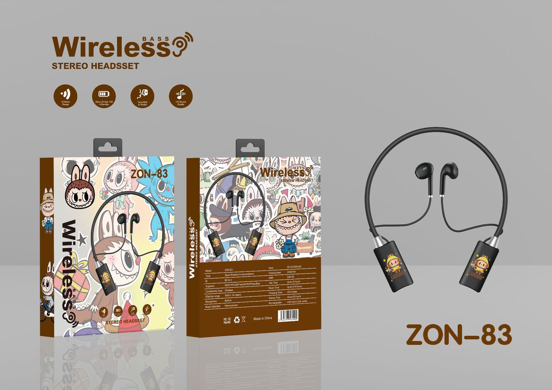 海豚卡通耳机 挂脖入耳式运动高音质降噪电池大容量耳机批发 投诉