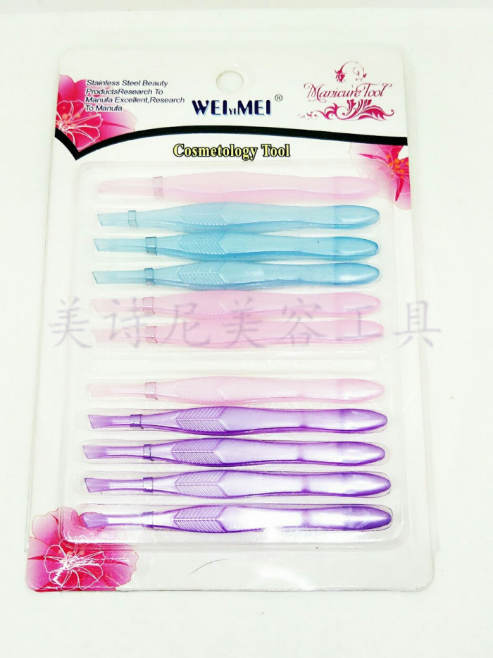 美容工具初学者塑料安全眉夹眉钳镊子拔毛器修眉工具插卡12支装