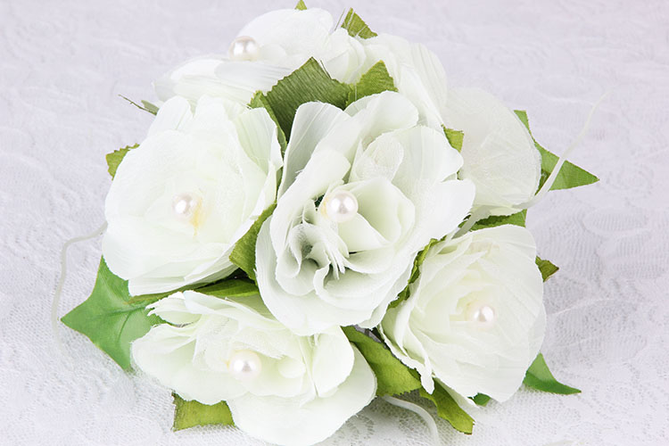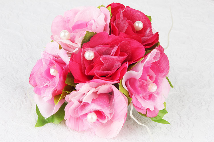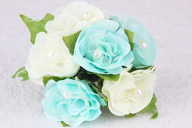 【产品组成】:仿真花6朵 + 珍珠 + 铁质夹子 + 透明包装袋