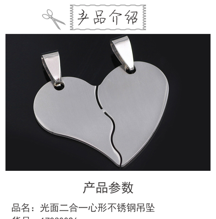 1.2mm厚可加工心形款316钛钢配饰 情侣二合一不锈钢吊坠 English | 投诉