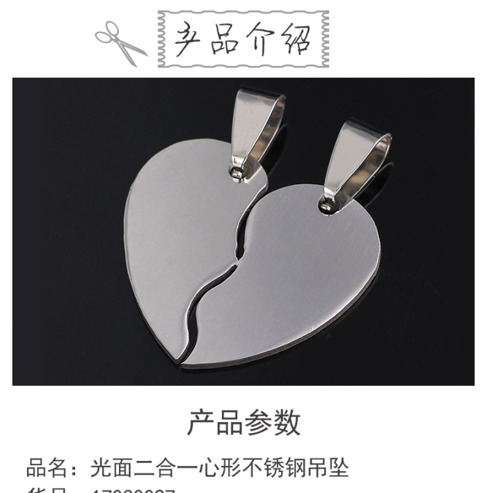 2mm厚可加工心形款316钛钢配饰 新款情侣二合一不锈钢吊坠 English | 投诉