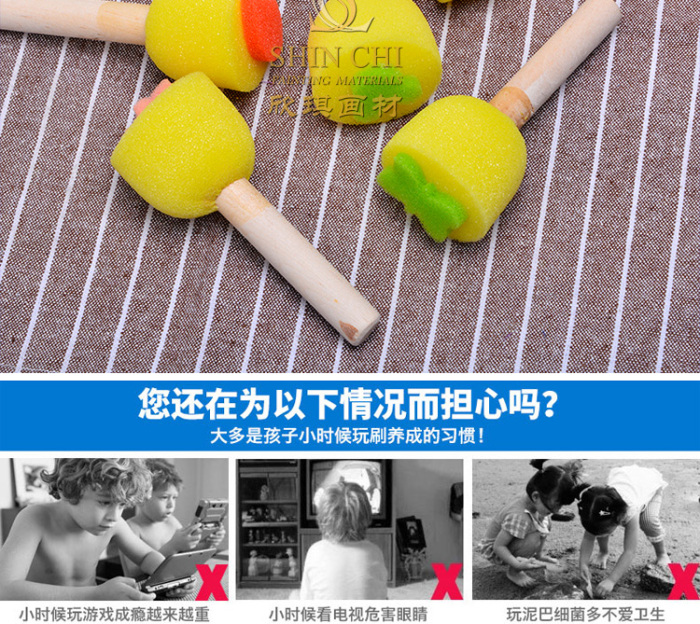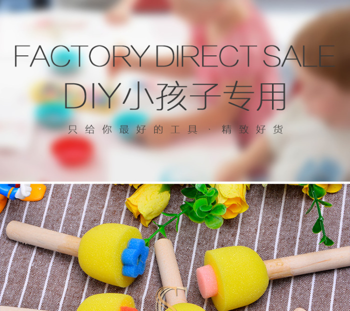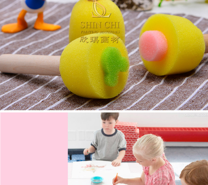 早教DIY幼儿园涂鸦工具绘画笔刷 圆形木柄海绵画刷 投诉