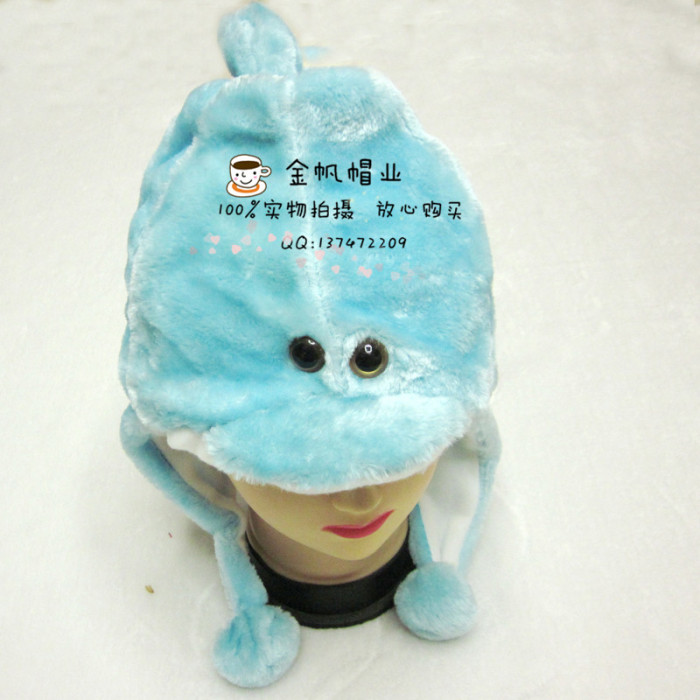 卡通新款表演帽冬季护耳帽化纤绒帽子短款海豚动物帽海洋动物帽 投诉