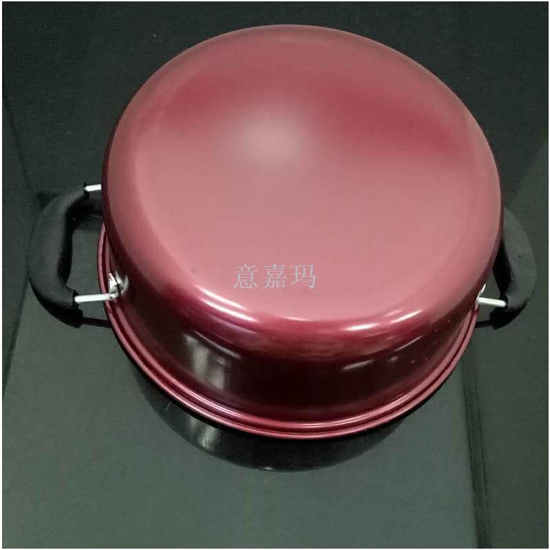视玻璃锅盖:不锈钢包边可视玻璃盖,美味烹饪看得见,大把手把盖柄,隔热防汤,盖上出气孔设计,释放蒸汽,降底锅内压力。
