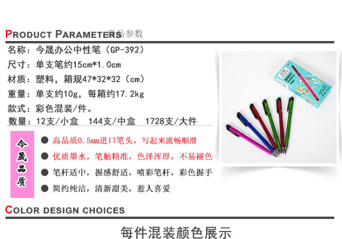 • 本厂主要生产中性笔.圆珠笔,中油笔.记号笔 以及笔芯系列等.义乌办公文具批发中心 http://21970.yiwugou.com