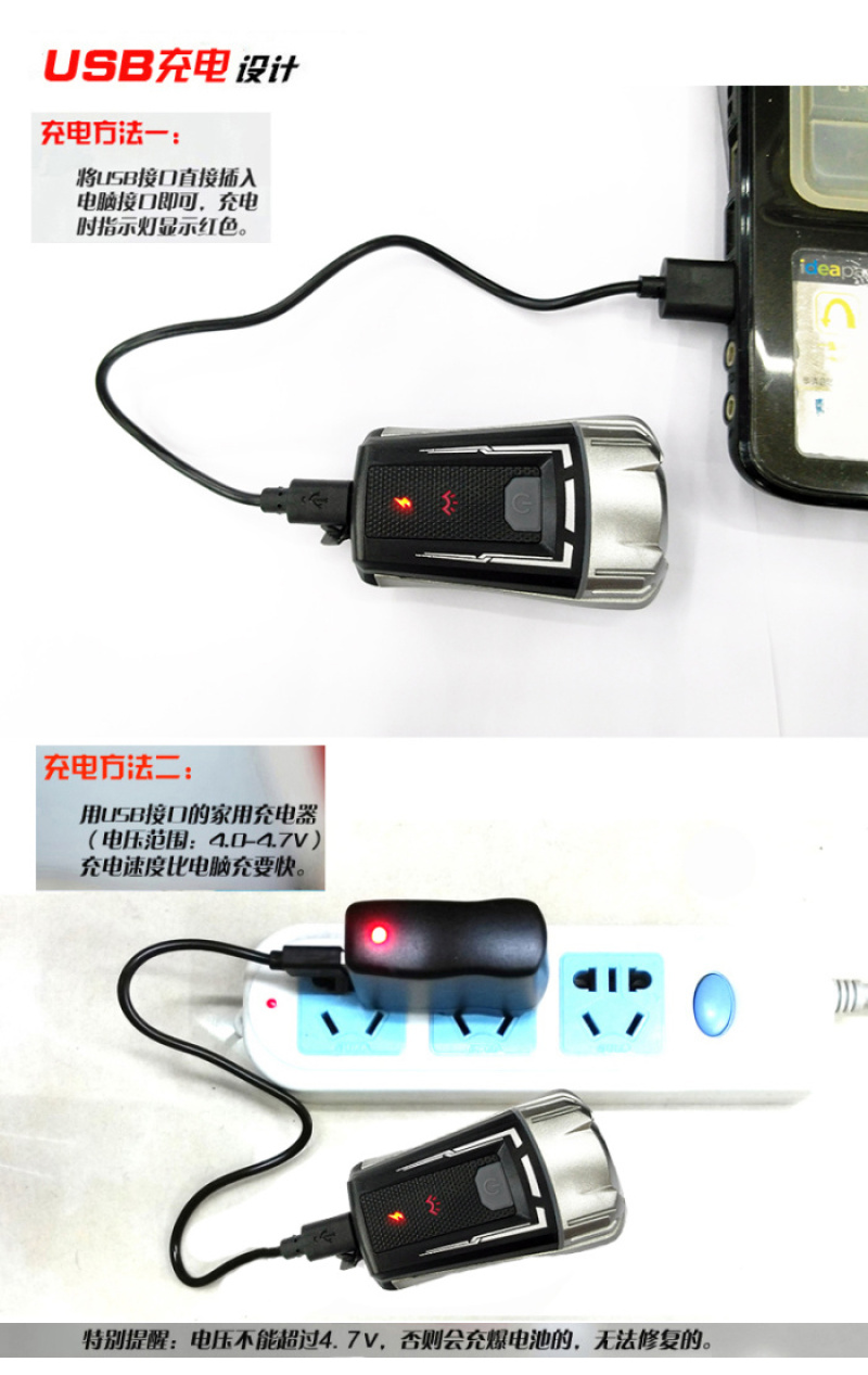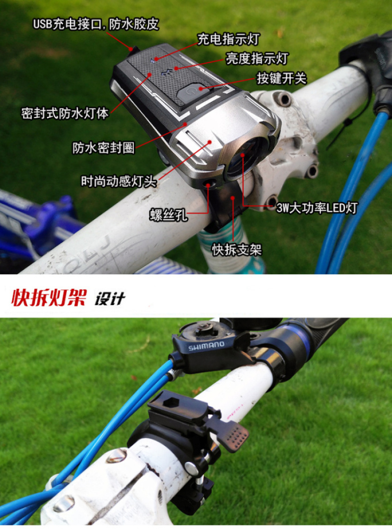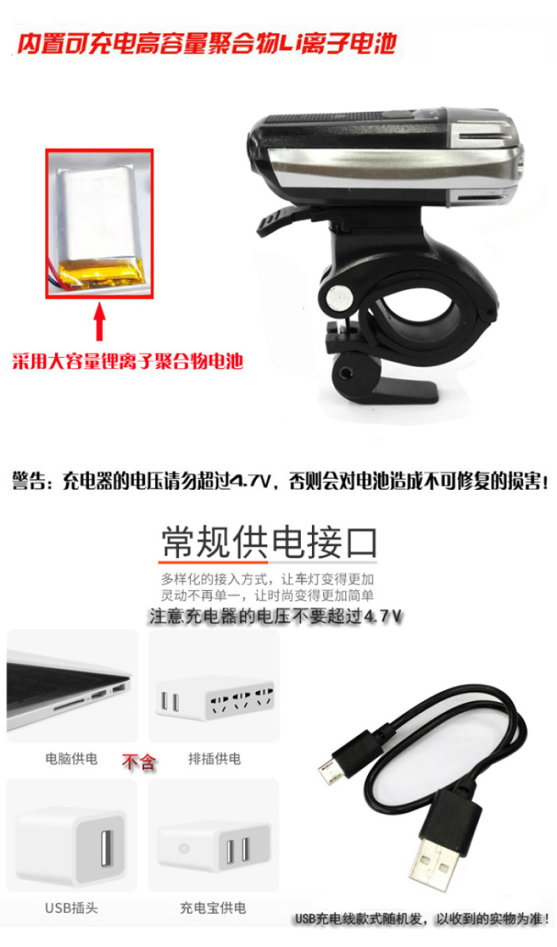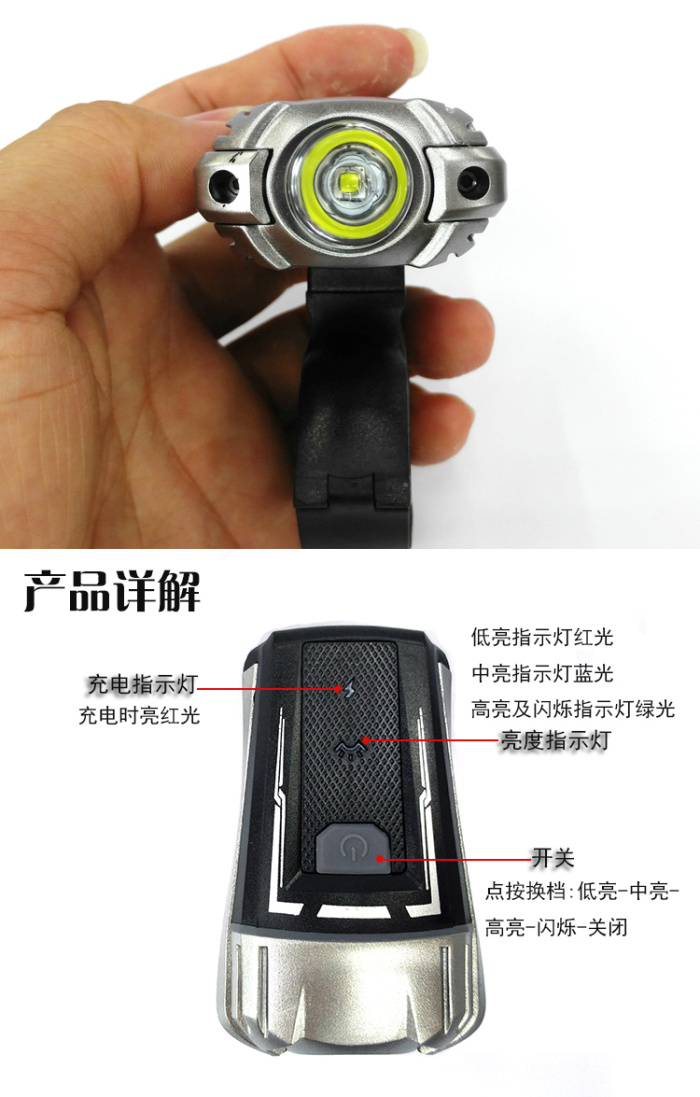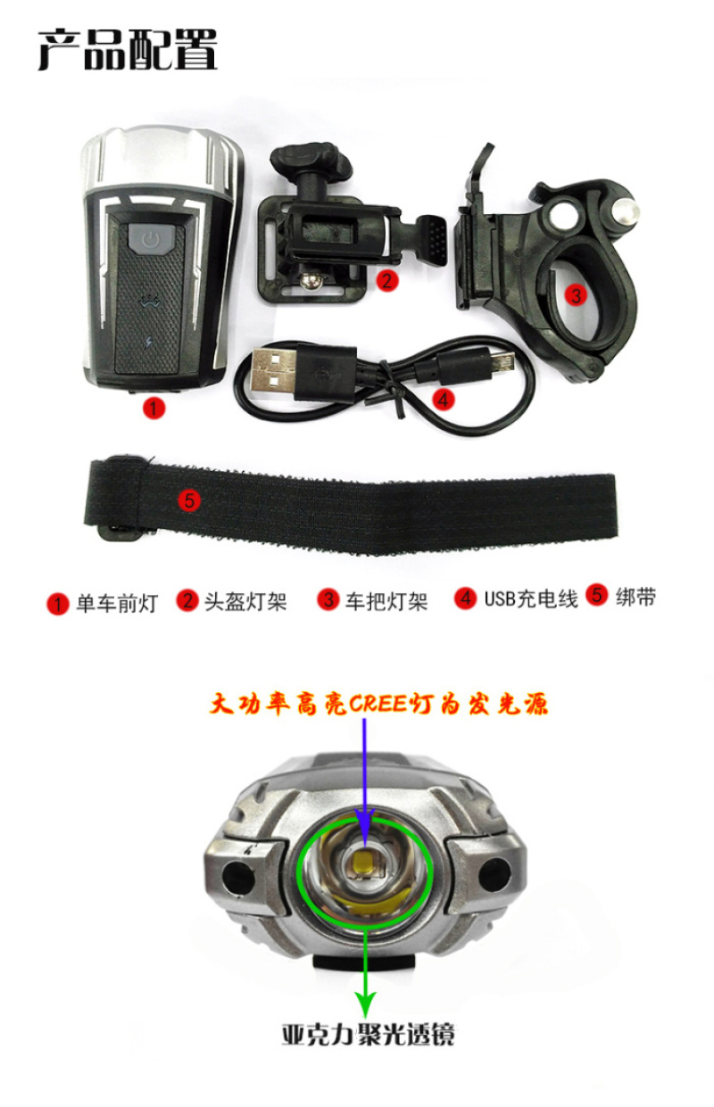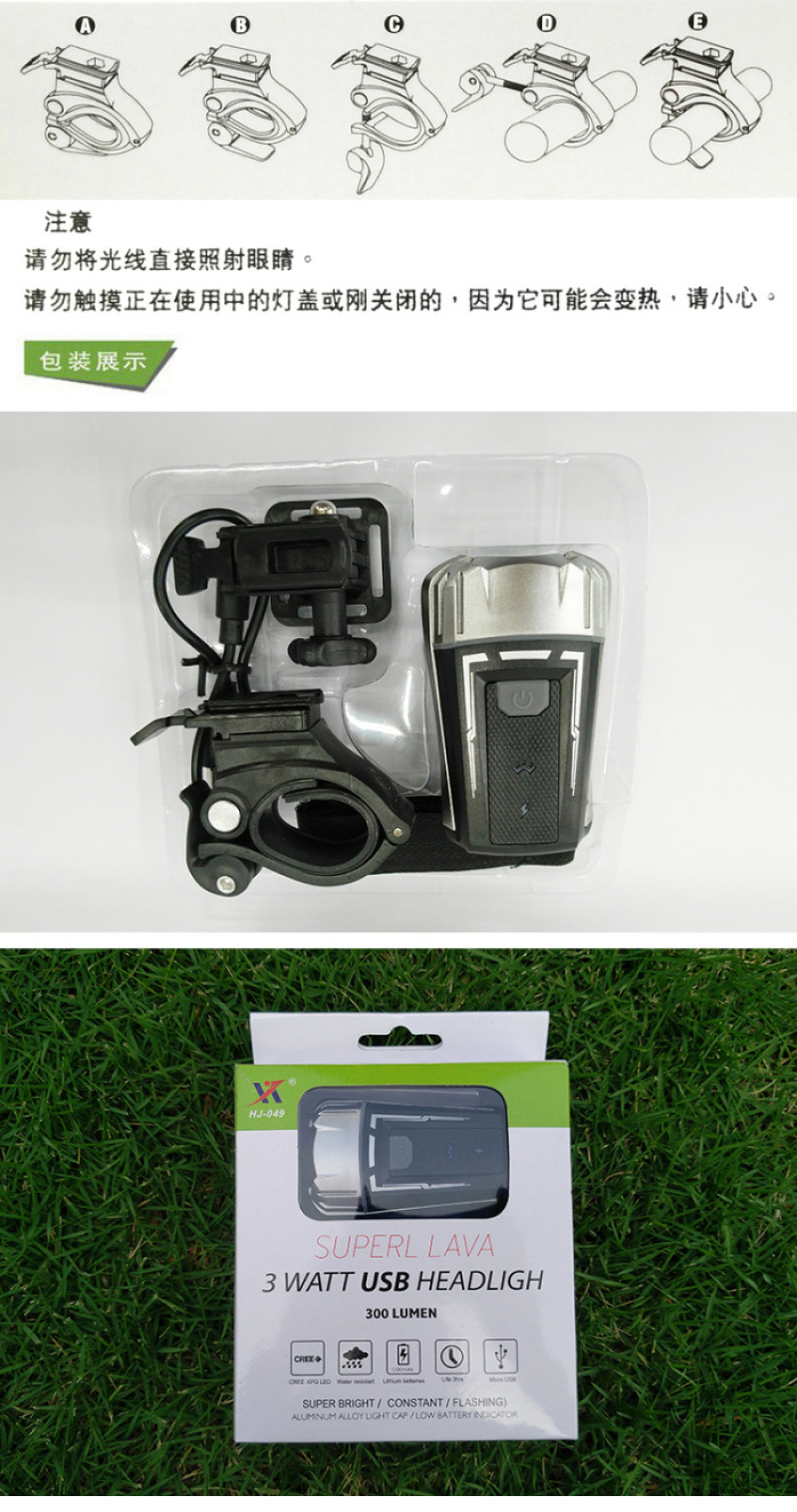 【型号】:hj-049 USB充电自行车前灯 车头灯 自行车灯
