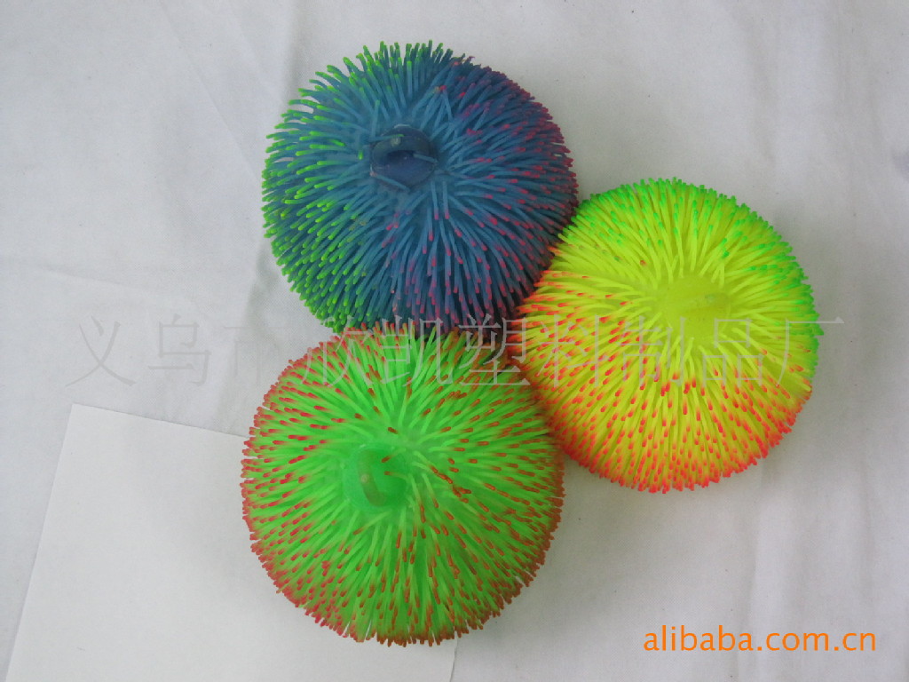 本厂专业生产各式软胶玩具如:毛毛球,碰碰球,弹跳球,挤捏球,吸盘球等闪光和不闪光新奇玩具.现又开发出一款新型的运动球,为我厂专利产品,造型可爱,深受小朋友的喜欢和青睐。