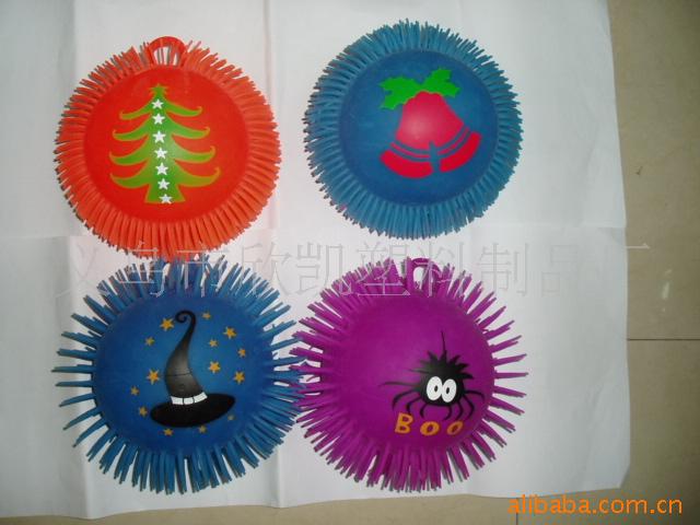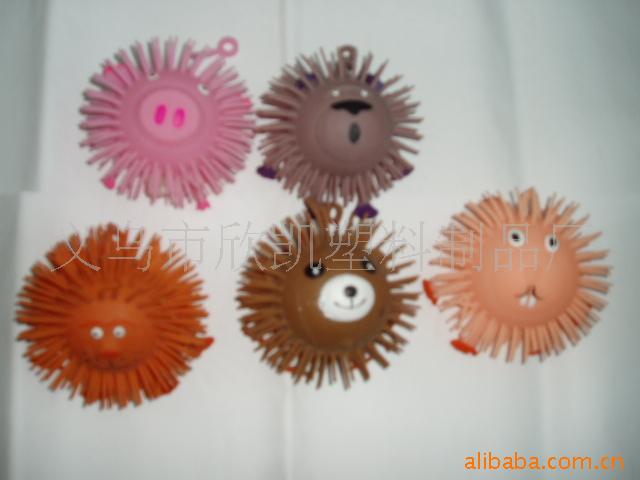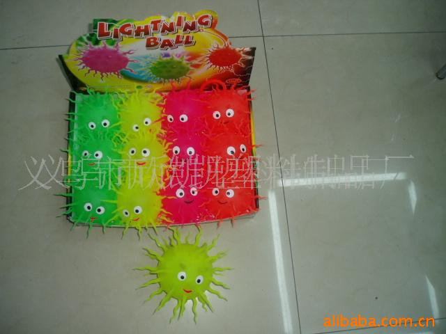 本厂专业生产各式软胶玩具如:毛毛球,碰碰球,弹跳球,挤捏球,吸盘球等闪光和不闪光新奇玩具.现又开发出一款新型的运动球,为我厂专利产品,造型可爱,深受小朋友的喜欢和青睐。