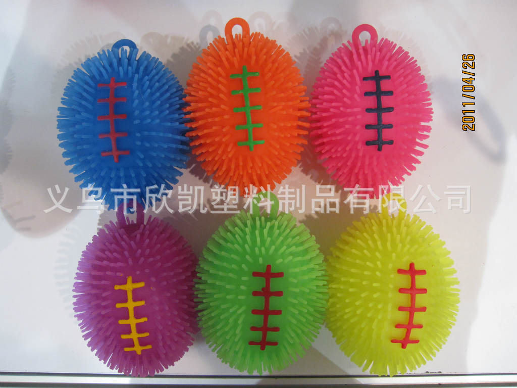 供应TPR闪光玩具橄榄球毛毛球