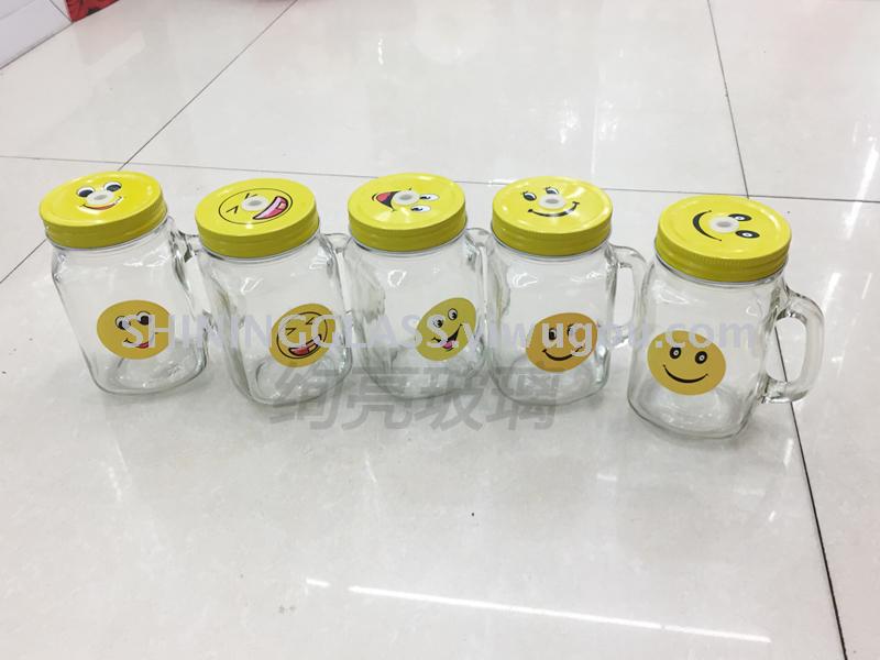 新款梅森杯笑脸吸管杯 墨西哥方形玻璃杯 冷饮杯