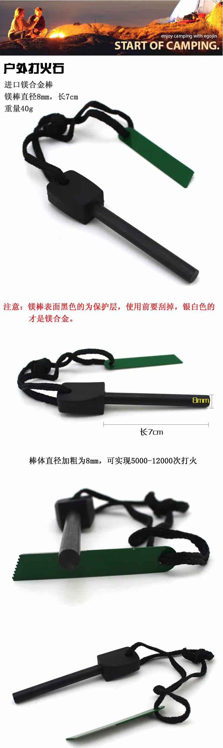 『规格』 全长10cm,镁棒长70mm,镁棒直径8mm
