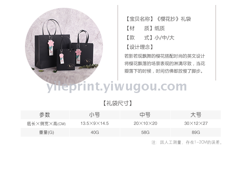 厂家直销,精美樱花特种纸礼品袋