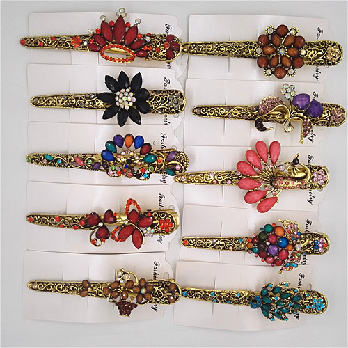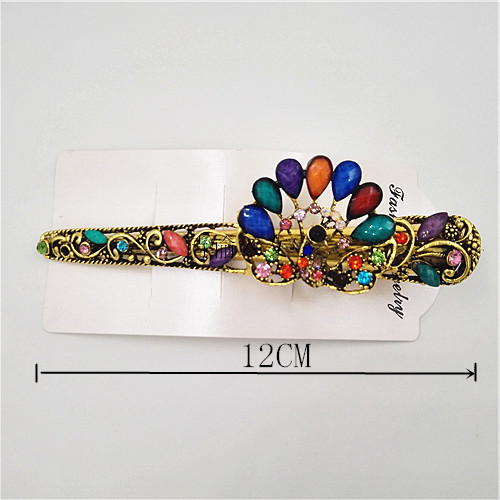 【产品名称】:镶钻石发夹 【产品品牌】:纯真饰品 【产品材质】:合金 【产品尺寸】:12cm*4cm,12个/打 【产品颜色】:蓝色/紫色/粉色/白色/香槟色/混彩