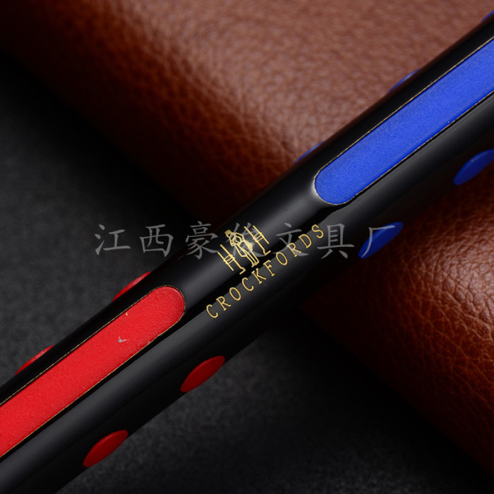 公司简介: 江西豪俊文具厂成立于1992年,位于南昌市进贤县具有“华夏笔都”美称的文港开发区工业大道。1998年在中国小商品城义乌设立办事处、公司现有熟练工人一百余人,有规范的四条流水线,机器设备包括5台拉管机,1条自动喷涂流水线和3台空压机,拥有自己的研发部门和研发人员,产品主要销往欧洲、北美、东南亚。我厂拥有整套金属书写工具生产设备,完全自主生产,并对外加工各类金属配件。本着“严格控制质量,认真对待客户”的精神服务于海内外