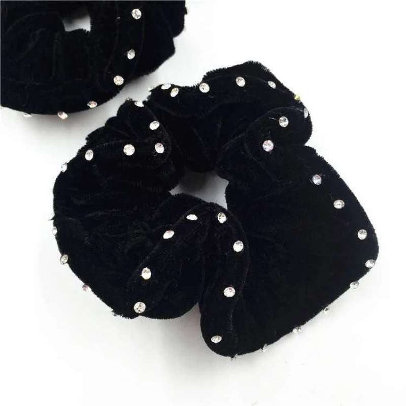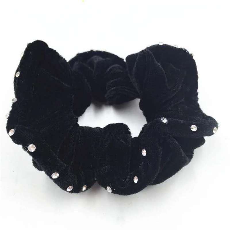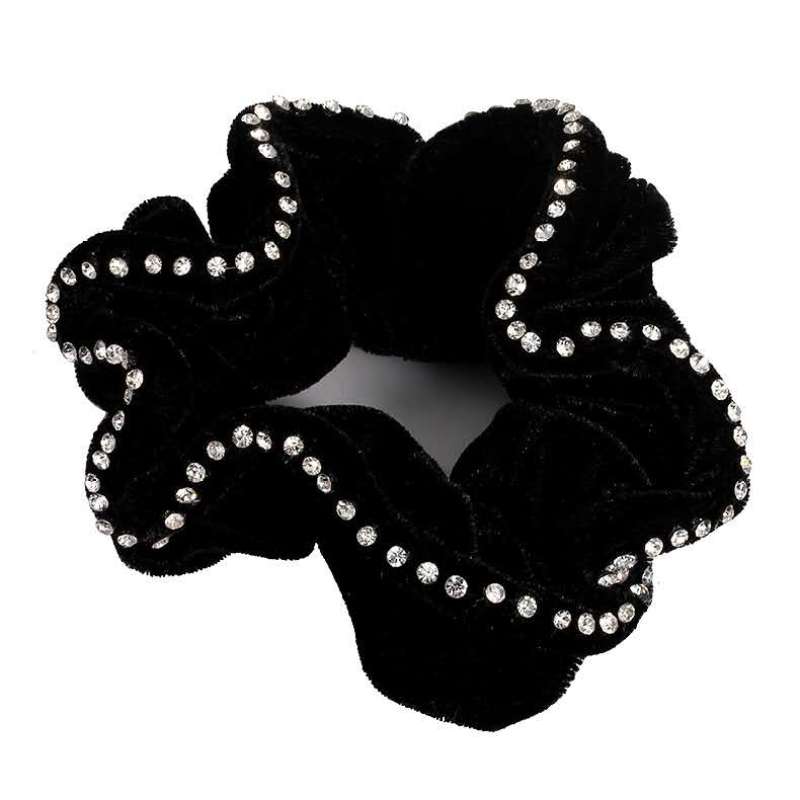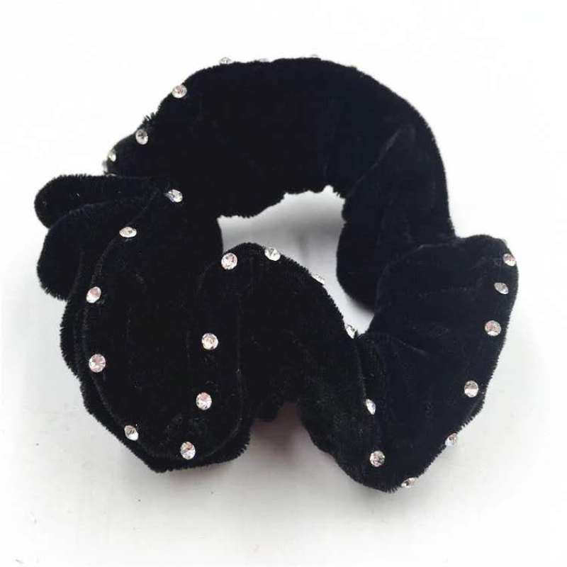 40颗钻纯黑绕布头花中年发饰简单盘发扎发大布圈2元地摊货源