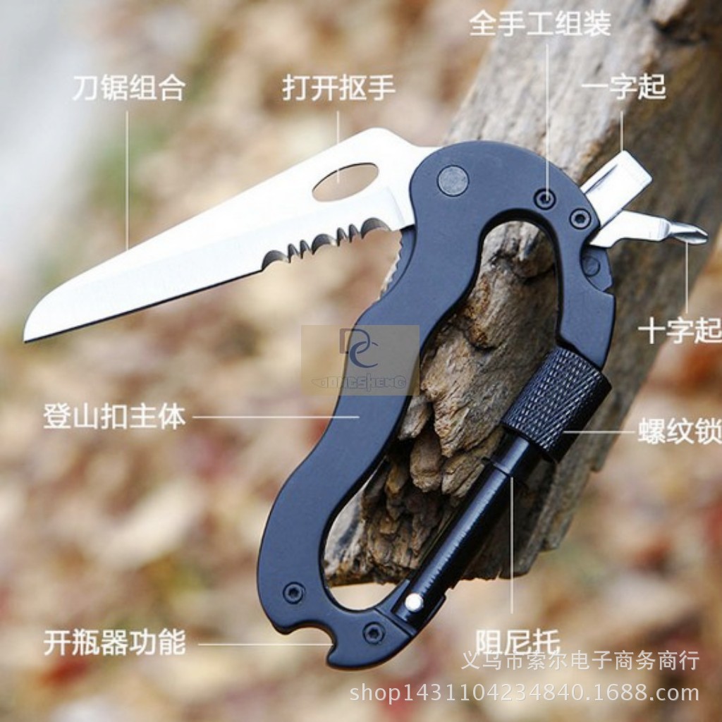 功能:登山扣组合/刀具/一字螺丝批/十字螺丝批/开瓶器