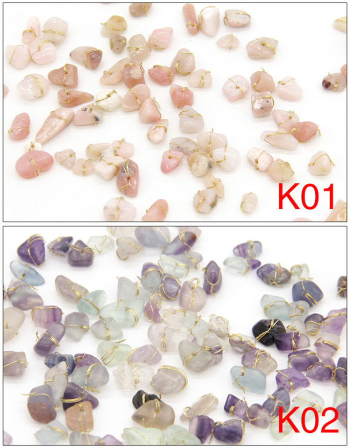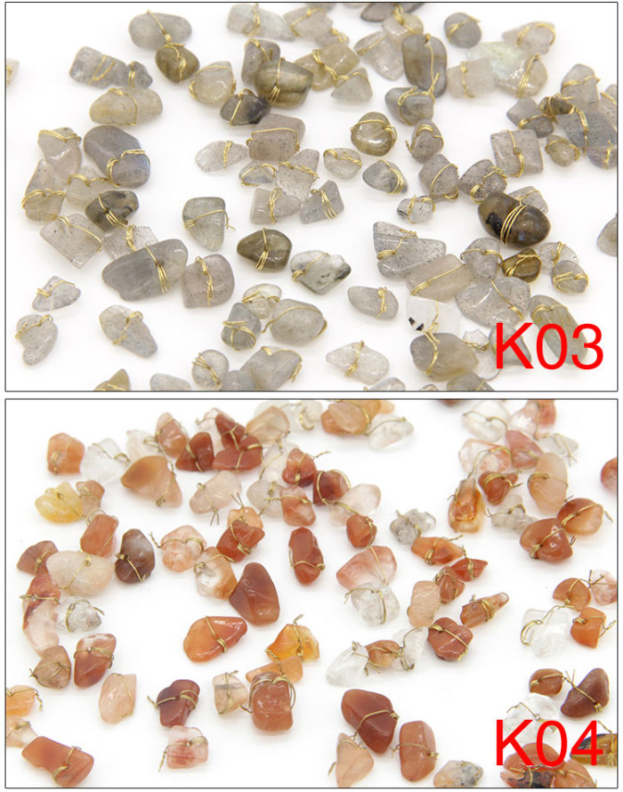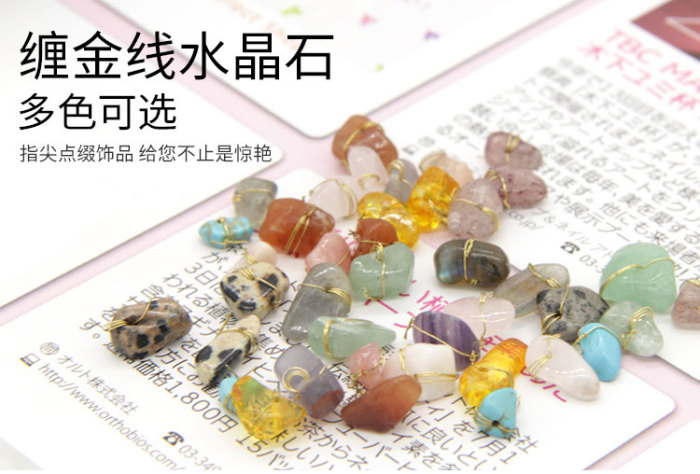 美甲饰品新品水晶石天然石捆绑金线不规则石头12色美甲石
