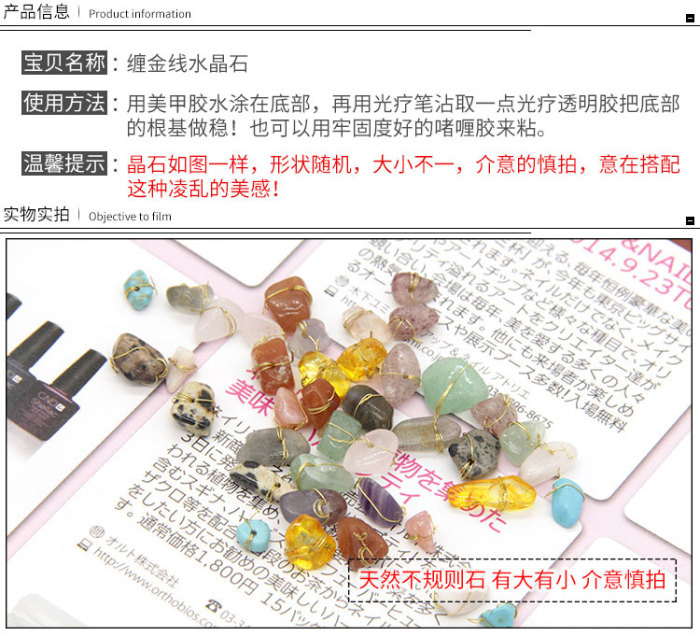 美甲饰品新品水晶石天然石捆绑金线不规则石头12色美甲石 投诉