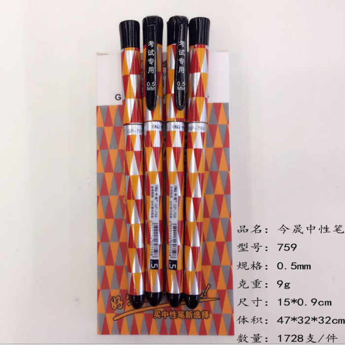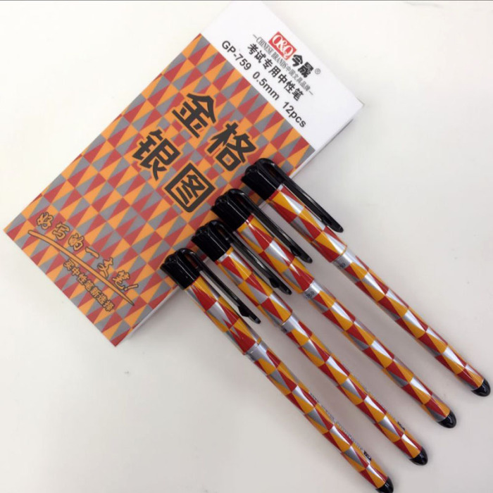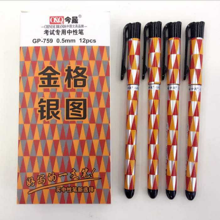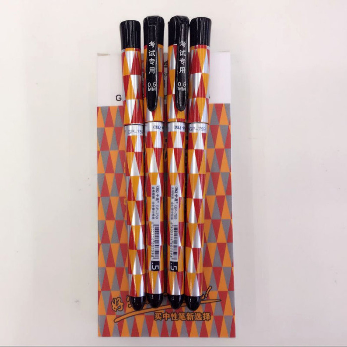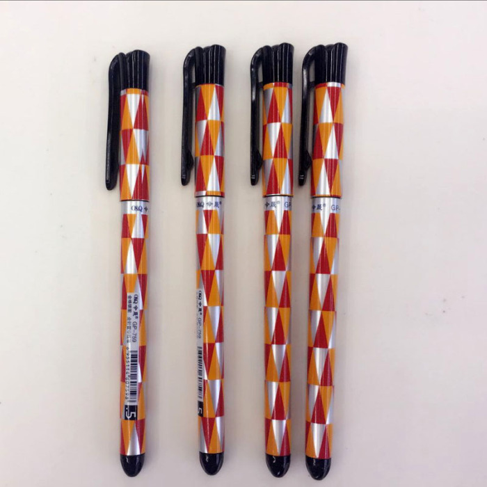 办公考试金格银图条纹中性笔针管头0.5mm  759