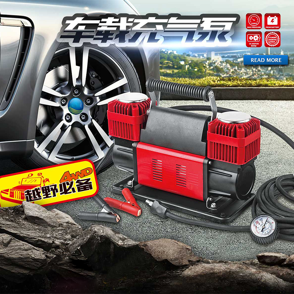 车载充气泵双缸车用轮胎电动12V便携式多功能加气汽车打气泵
