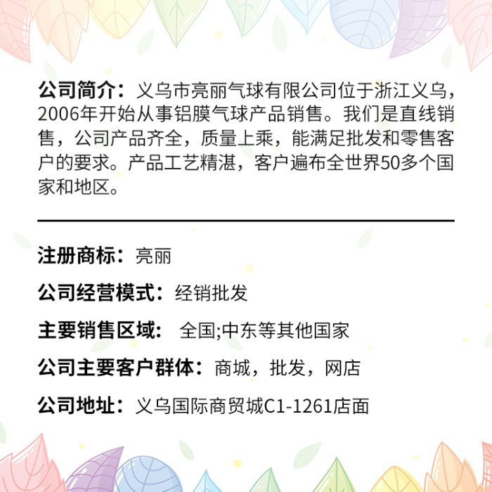 3,本店有实体大仓库,专业做卡通气球类儿童玩具,喜庆节日类派对气球批发,以全国品种最多,款式最新,价格最*,品质最高等优势,常年供货于全国各大批发市场。