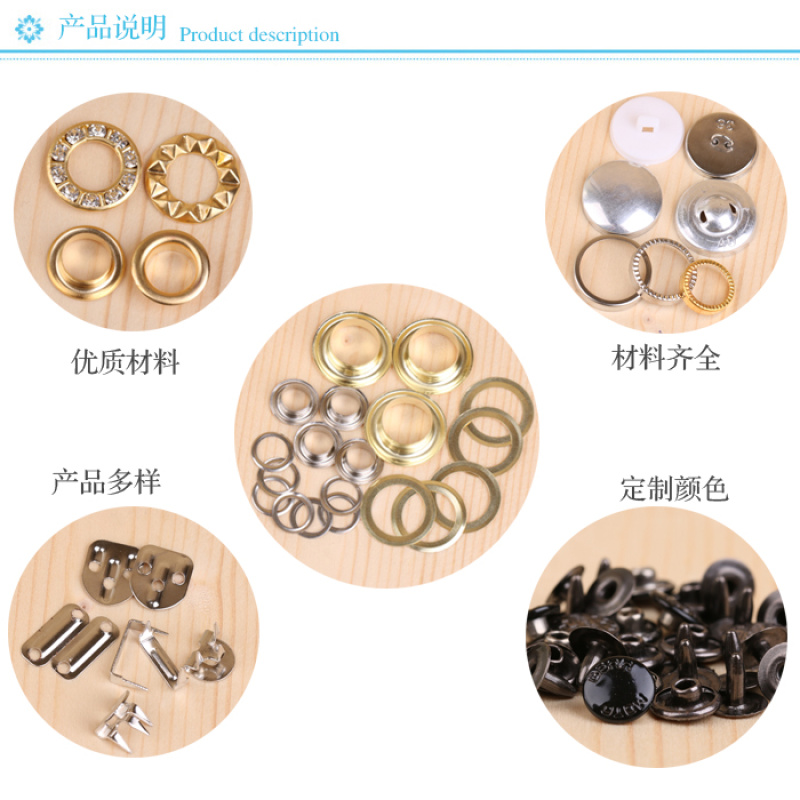 温州新源服饰辅料有限公司专业生产经营裤钩,装饰扣,衣角钉,钻扣,汽眼,工字扣,五爪扣,帽钉,四合扣,包扣,各种模具,合金面板等,款式多样,可跟椐客户样板或图纸生产,欢迎来样定做!欢迎顾客直接来国际商贸城三区4楼2街28926店面直接参观,本店立足商贸城十多年是一个广受顾客好评的优质卖家,是您选择购买的不二之选!