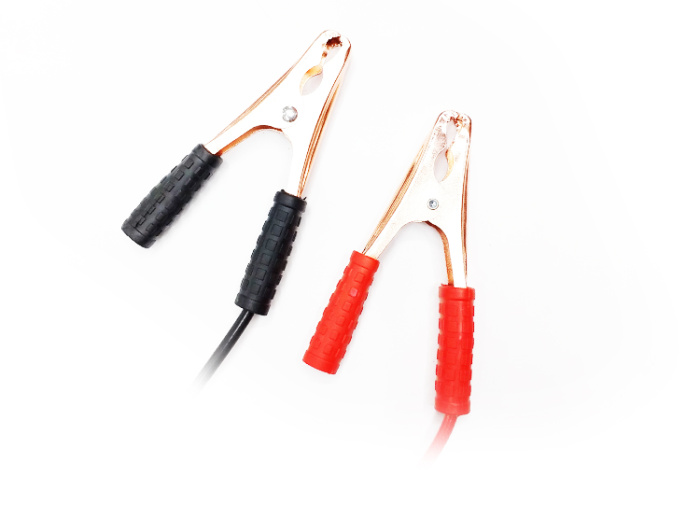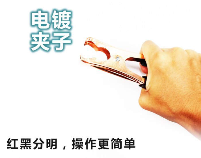 (1)首先将启动线的红色电线钳在"被救车"的红色电池正极之上。