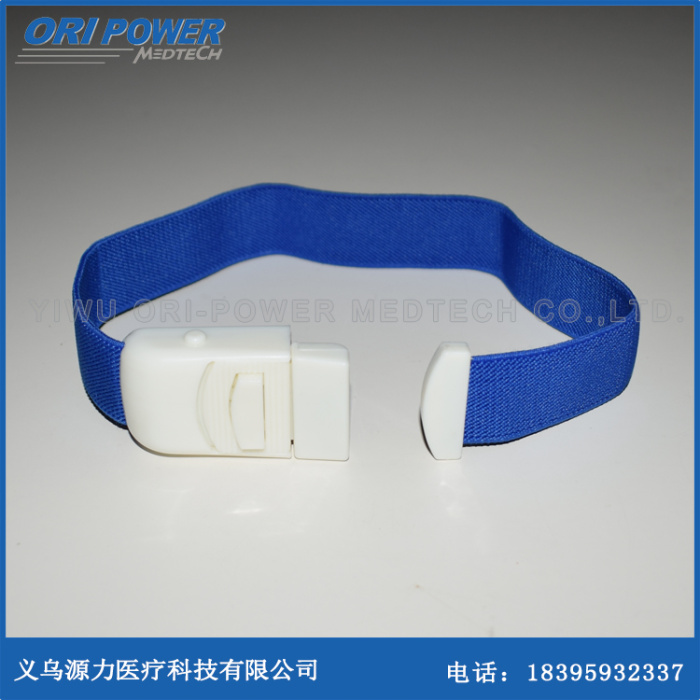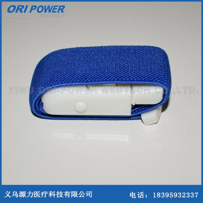 打开小包装,取出压脉带,轻压压脉带锁止阀上的筏扣,阀扣自动弹出,拉出约20-45cm长度的松紧带,视病人上手臂的粗细而定,再将阀扣插回锁止阀,这样就形成7-11cm的压脉带圆环。将圆环套入病人输液(血)的上臂,拉紧松紧带直至符合常规输液状态。由于病人静脉受压,血液回输时受阻,静脉扩张,在静脉扩张处即可插上输液(血)针,在完成输液(血)常规观察后,即可轻压压脉带锁止阀上的筏扣,阀扣自动弹出,松开压脉带后取出。