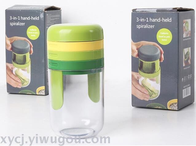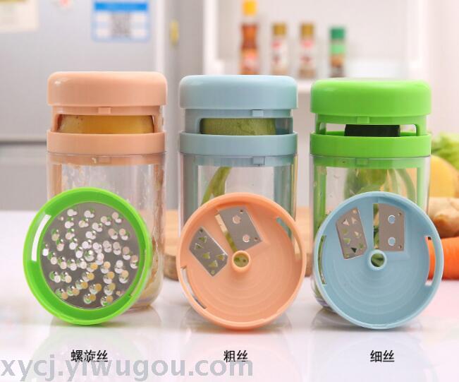 厂家直销三合一菜丝旋转杯凉菜切丝器刨丝器切片器擦丝器品质保证