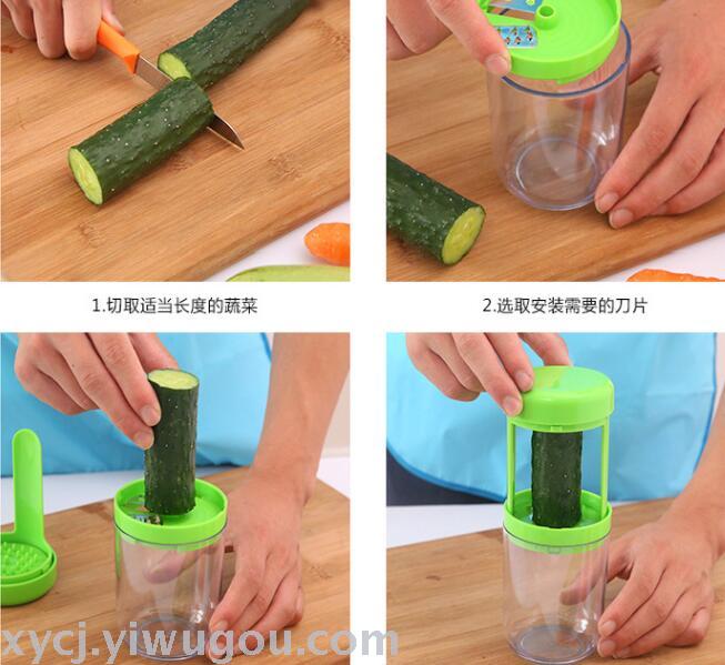 厂家直销三合一菜丝旋转杯凉菜切丝器刨丝器切片器擦丝器品质保证 投诉