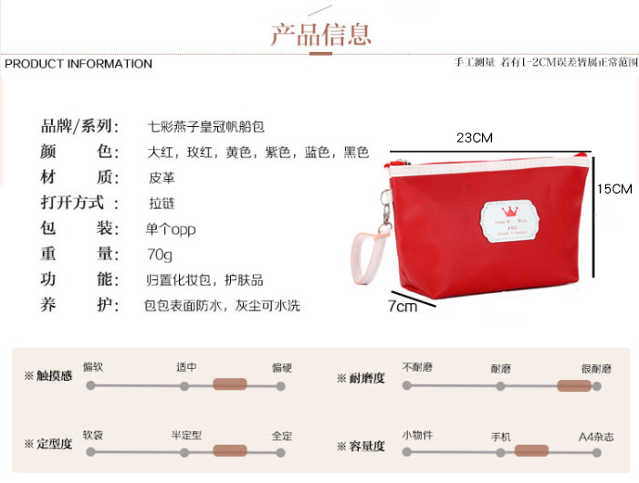 新款纯色化妆包化妆袋洗漱包手拿包皇冠帆船手提包定制LOGO 投诉